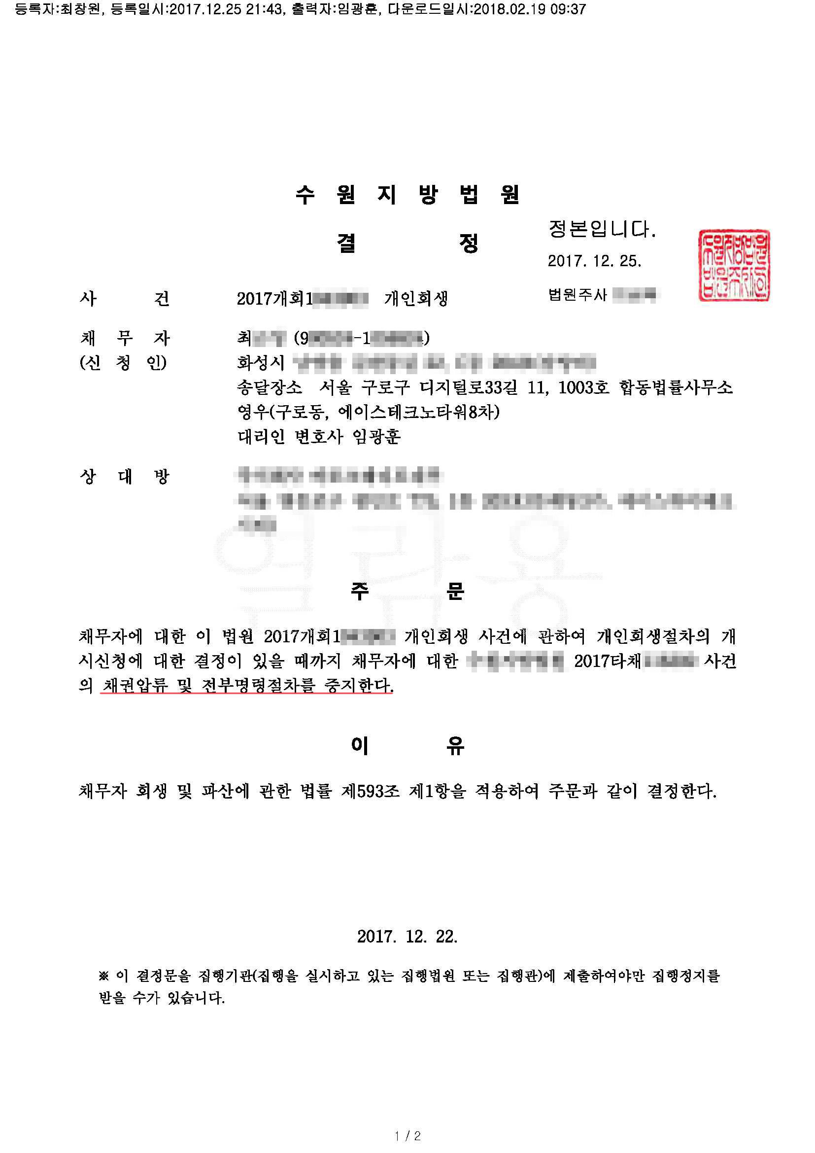 [수원지방법원] 투자실패 5천만원 빚독촉 방어 성공