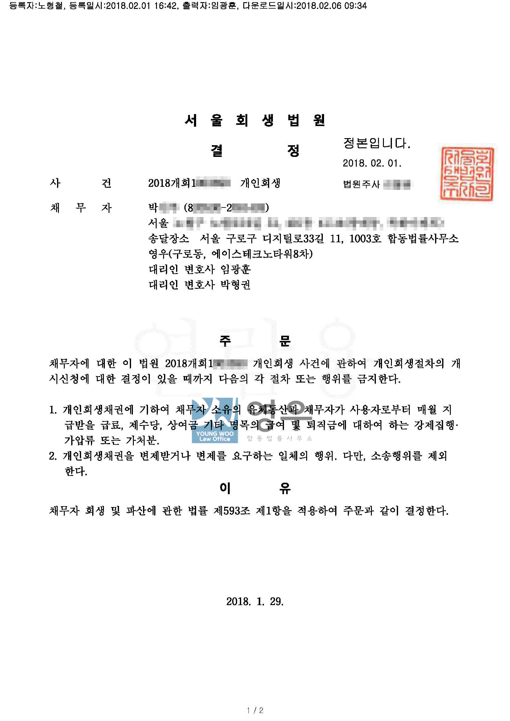 [서울회생법원] 9천만원 채무 5일만에 빚독촉방어 성공