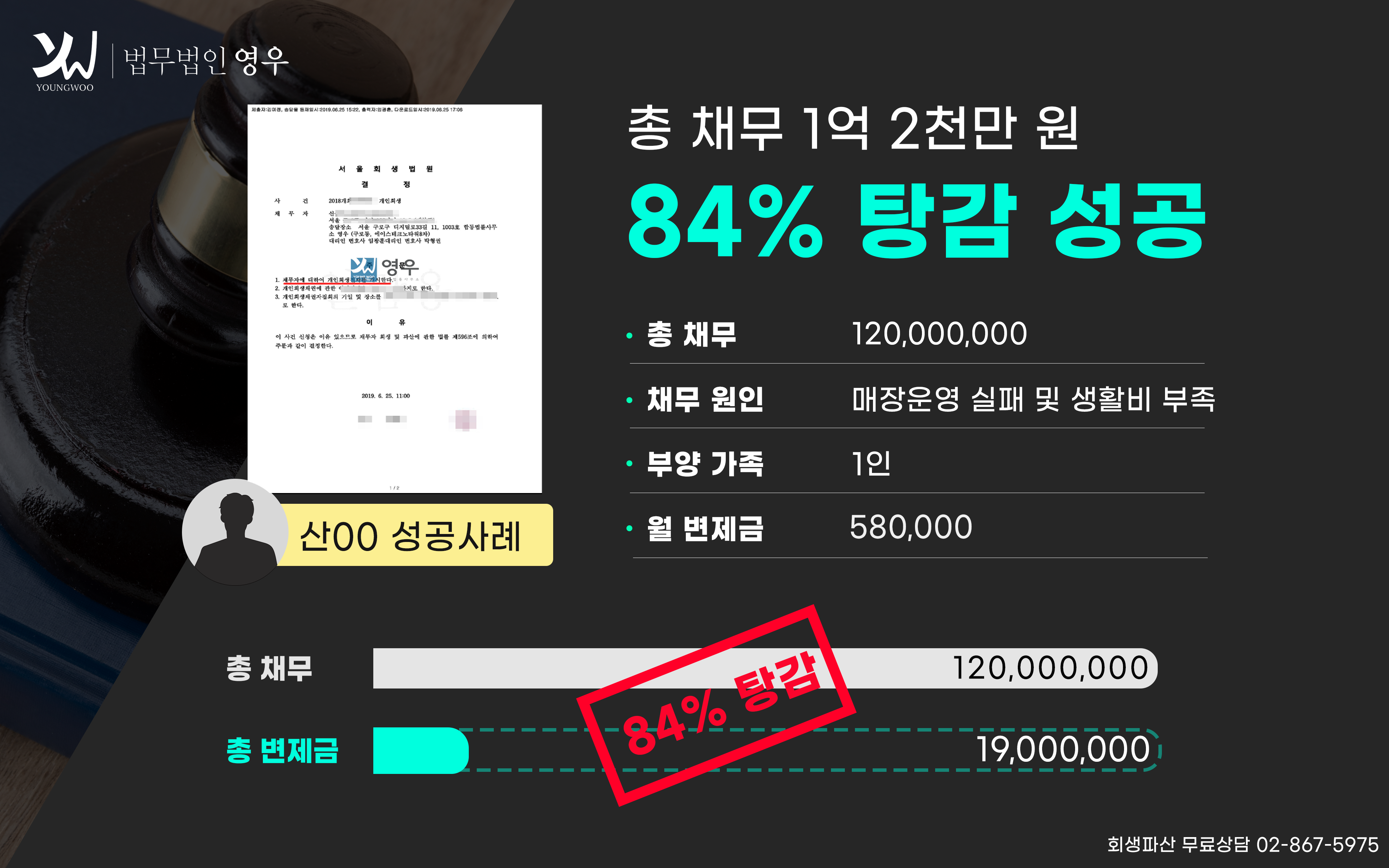 [서울회생법원] 매장운영 실패 및 생활비 부족 1억 2천만 원 채무 탕감율 84% 이상 개시결정 성공